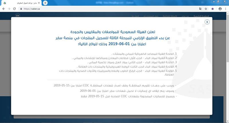 沙特SABER认证是2019年最新的认证,意在统一沙特种类繁多的认证,大家的都知道沙特是海湾国家分为沙特阿拉伯,阿联酋,阿曼,巴林,卡特尔,科威特,也门7个国家不算一个组织,没有统一口径,所以沙特为统一标准2019年1月开始执行沙特SABER认证,把越来越多的产品列入到沙特SABER认证中。